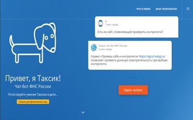 Для удобства налогоплательщиков и повышения качества информирования ФНС России на официальном сайте создан чат-бот по имени Таксик.